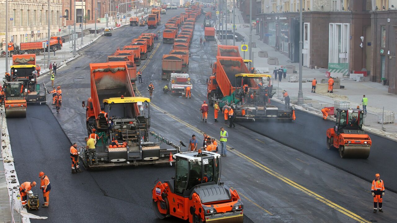 Производство работ: Подготовка основания и укладка асфальта.