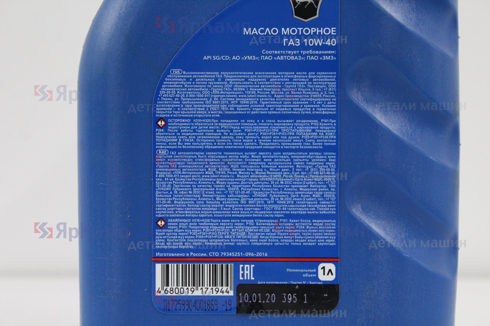 ГАЗ 10W40;К.1Л. Масло моторное ГАЗ 10W-40 полусинтетика 1Л (API SG|CD); Оригинал ГАЗ ЛУКОЙЛ