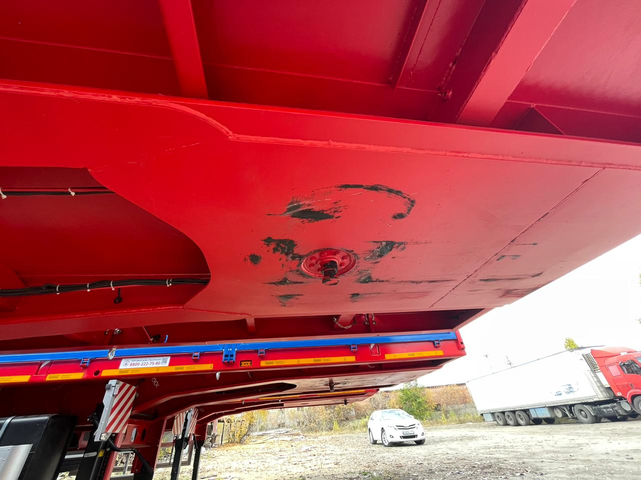 Стандартное оснащение • пневмопривод тормозов • опорное устройство • противооткатные упоры • коники выдвижные • передний щит, комплект бортов • кронштейны на щите под шанцевый инструмент и дополнительный ящик • подъемник запасного колеса (2 шт) • металлический инструментальный ящик (3 шт) • выдвижные петли для крепления груза (7 пар) • задний буфер, регулируемый по высоте • защитные резиновые накладки на кониках • бак 450 л.